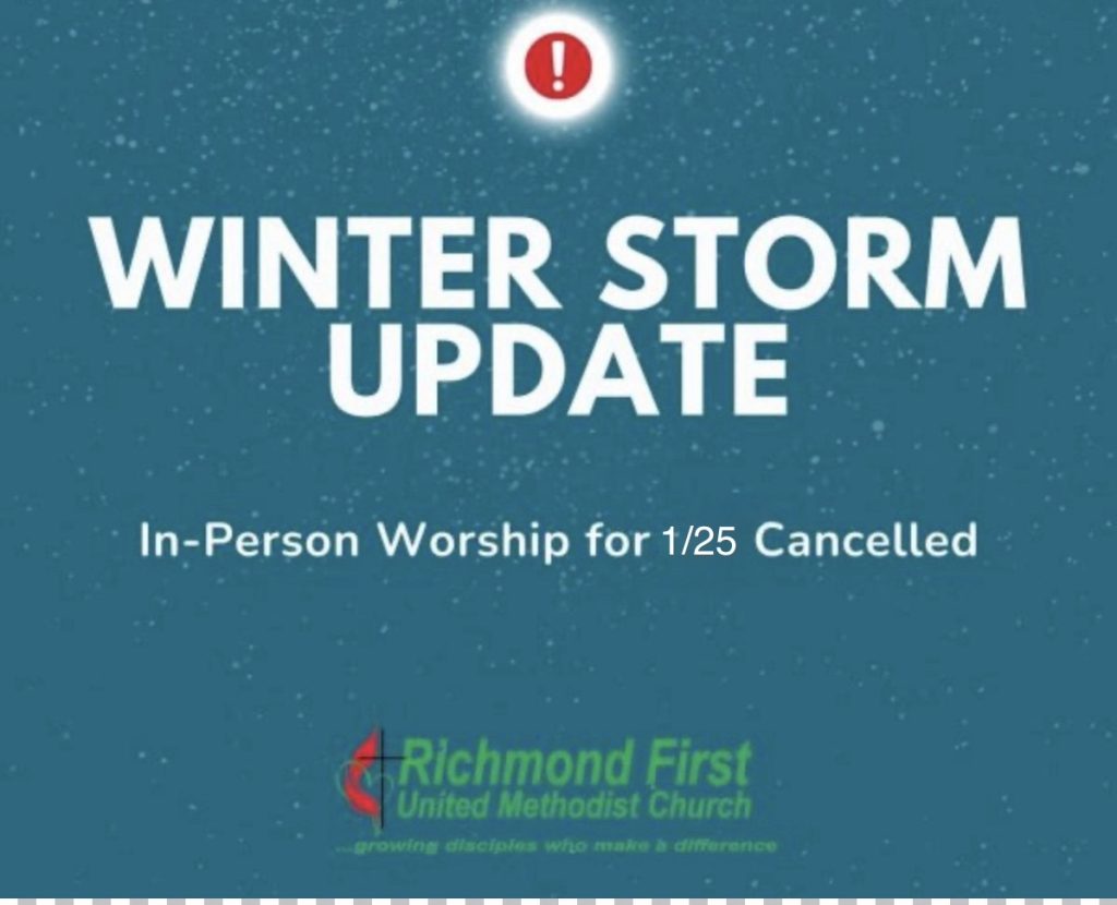Due to the forecasted snow and ice this Sunday, January 25th, we’ve made the decision to cancel our in-person church services for everyone’s safety.